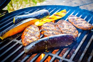 DSC_0055-1 lamb kabobs and eggplant on gril